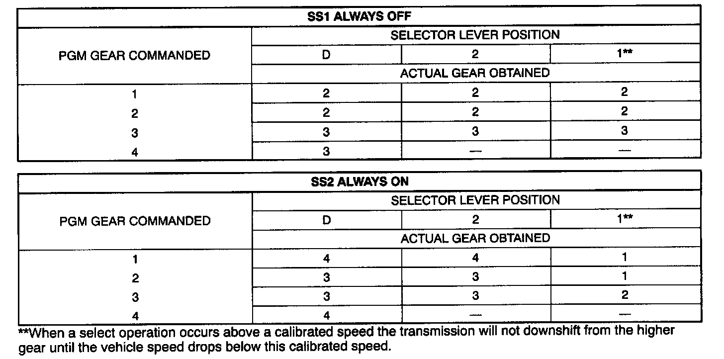 - SS1 and SS2 provide gear selection of first through fourth gears by providing ON/OFF pressure control to the shift valves.