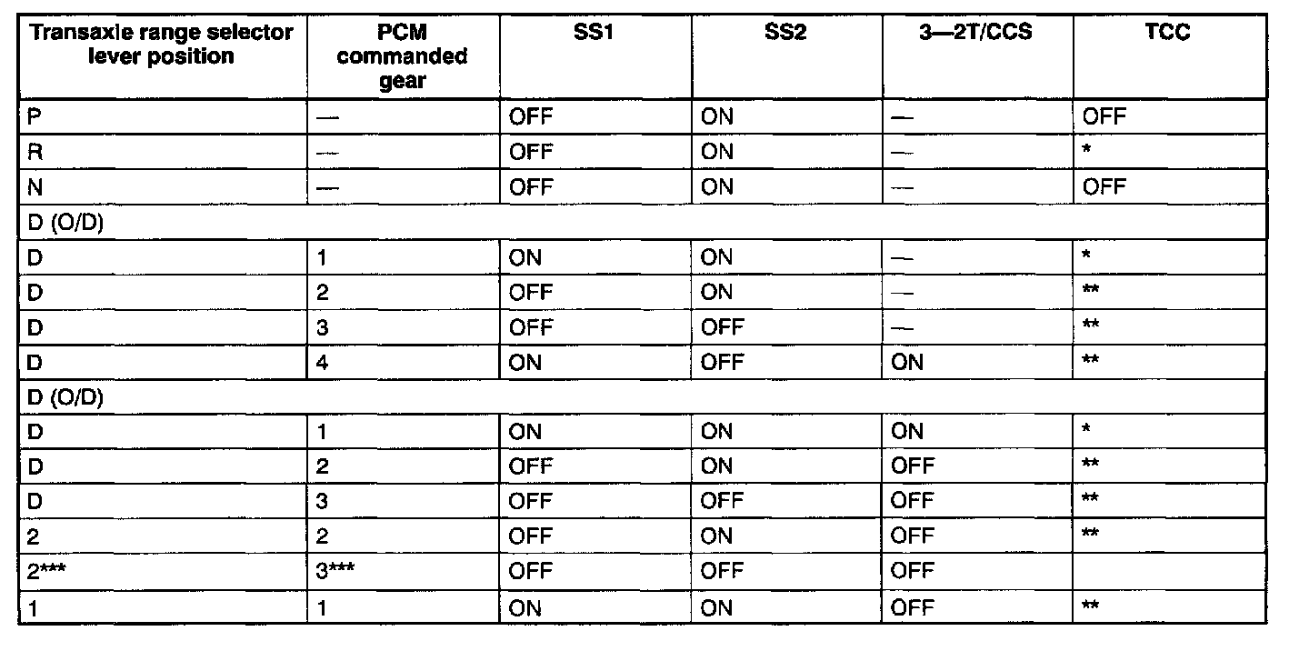 - The following solenoid operation chart shows normal solenoid operation for given operation mode.