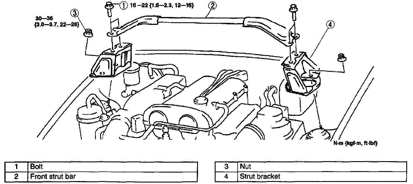 FRONT STRUT BAR REMOVAL/INSTALLATION