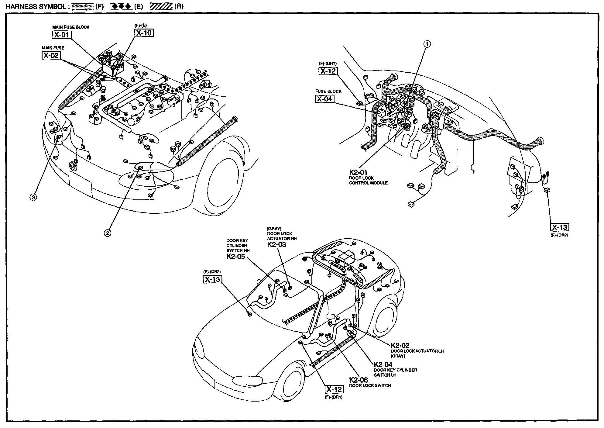 K-2 - Power Door Lock System Harness/Connector Symbols: