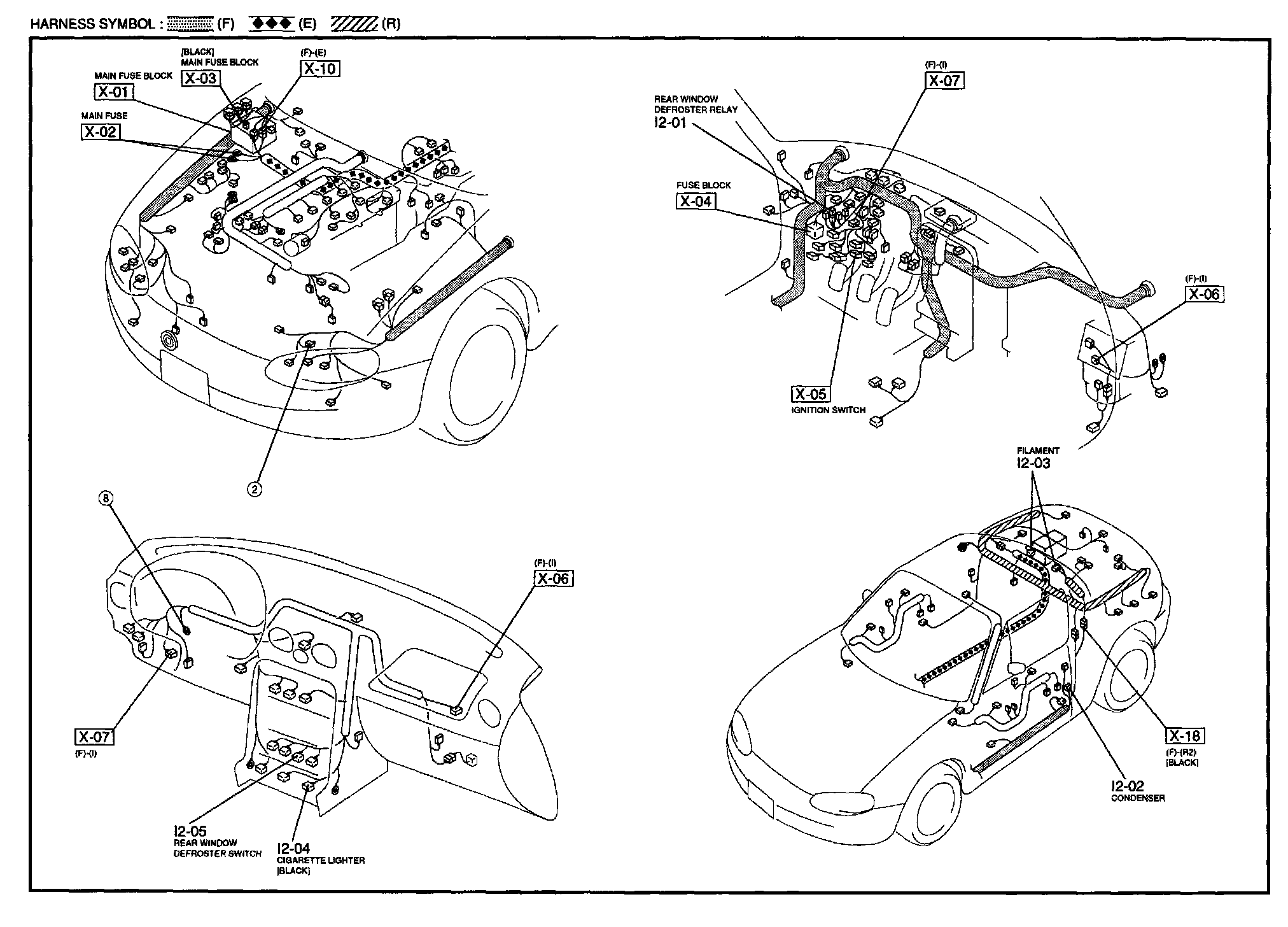 I-2 - Cigarette Lighter / Rear Window Defroster Harness/Connector Symbols: