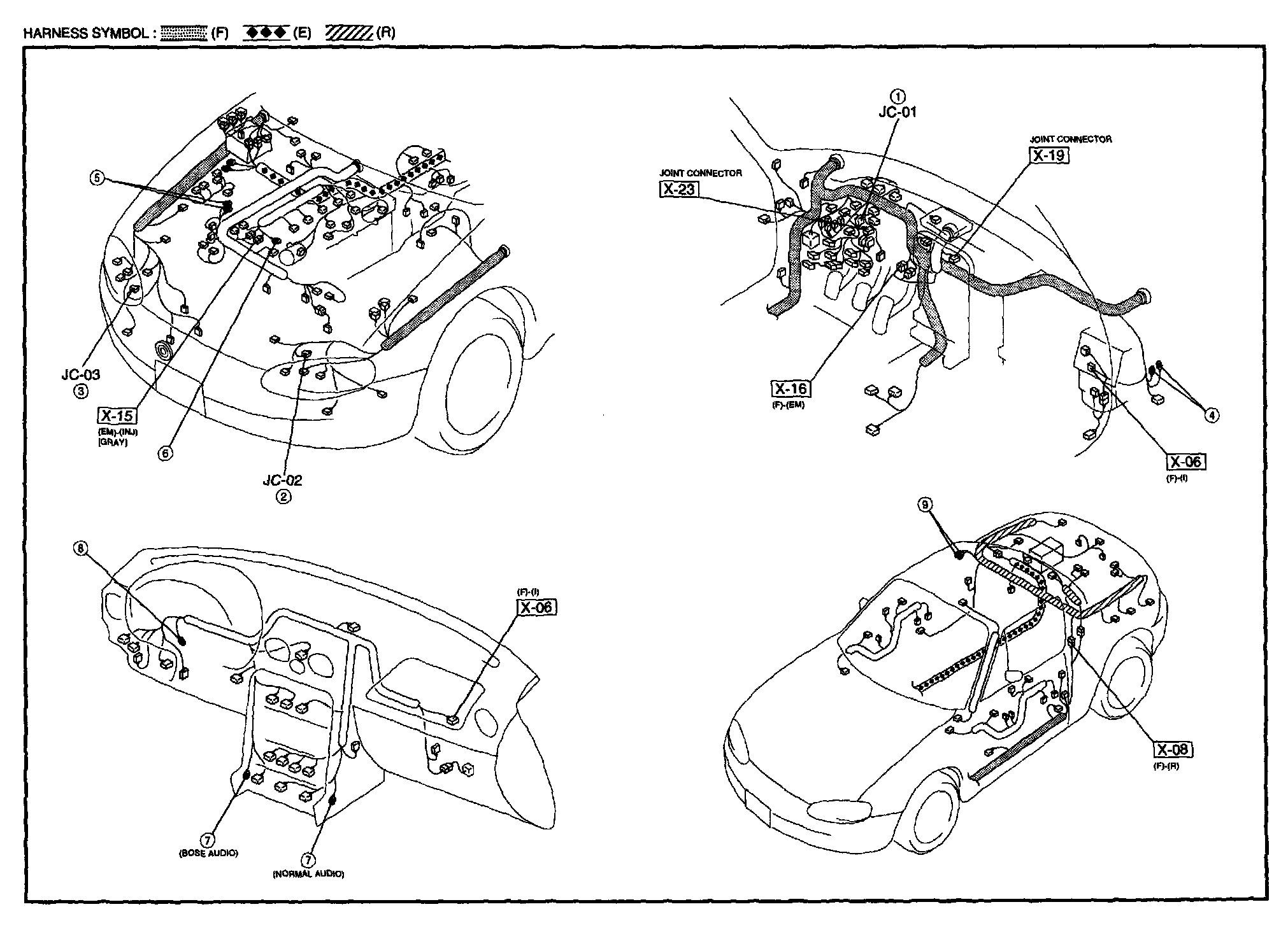 Y - Ground Point Circuit Harness/Connector Symbols: