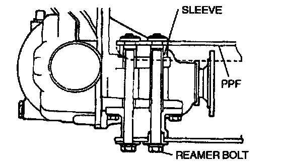 6. Remove the transmission side bolts, and remove the PPF. Do not remove the spacers from the PPF.