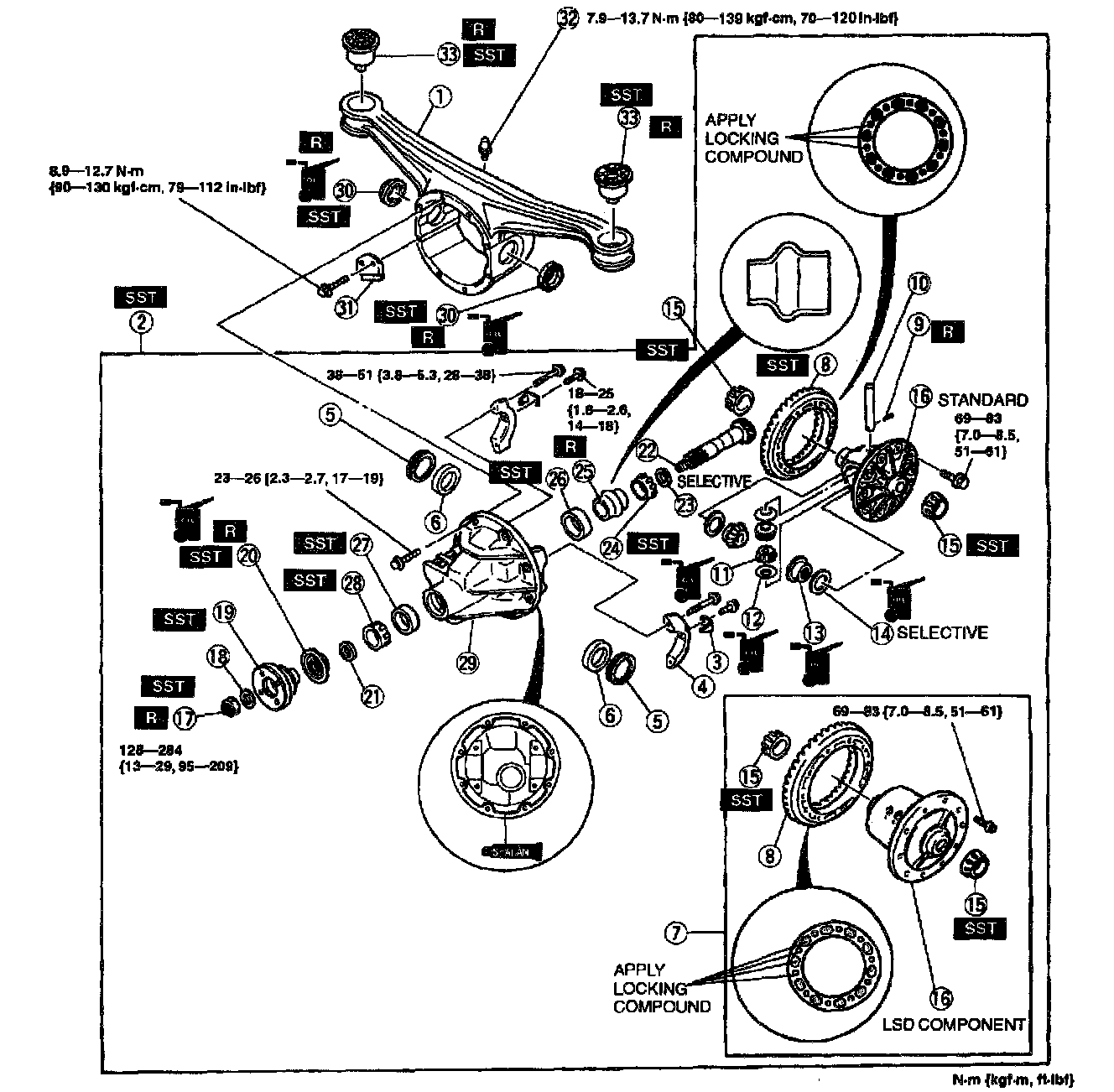 Tightening torque 128 - 284 Nm (13 - 29 kgf-m, 95 - 209 ft. lbs.)