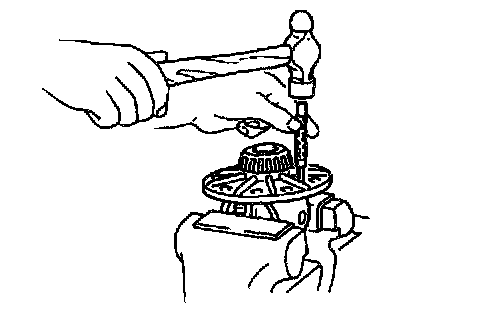 1. Secure the gear case in a vise and tap out the knock pin toward the ring gear side.