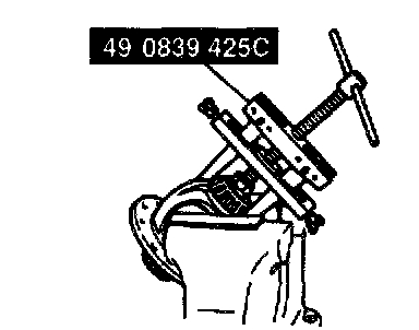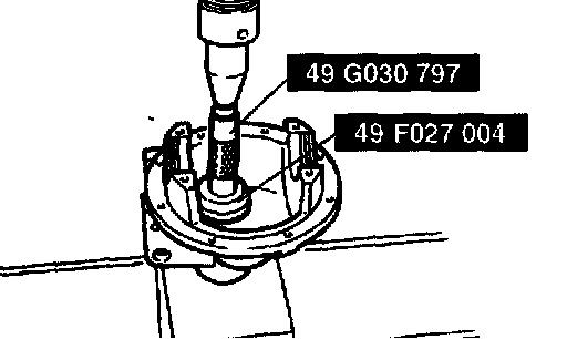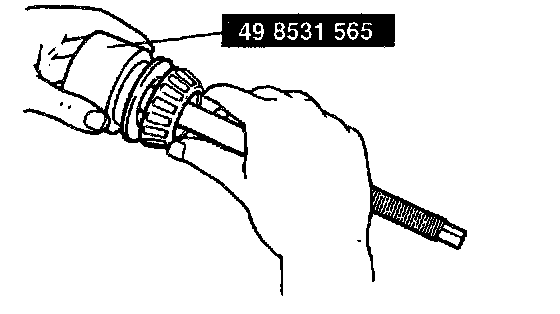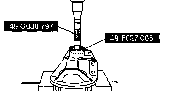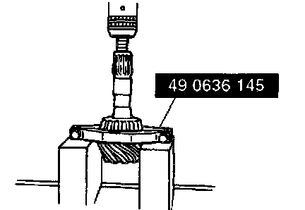 3. Using the SSTs, press the bearing inner race (rear bearing) onto the drive pinion until the force required starts to increase sharply.