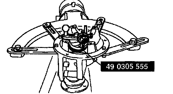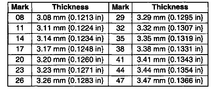 9. Add the 2 (left and right) values obtained by the measurements taken in step (8), and then divide the total by 2. From this result, subtract the result obtained by dividing the number inscribed on the end surface of the drive pinion by 100. (If there is no figure inscribed, use 0.) This is the pinion height adjustment value.