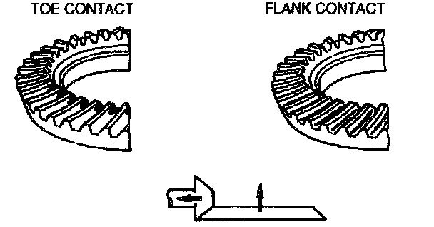 1) Inspect the toe and flank contact by replacing the spacer with a thinner one to move the drive pinion outward.