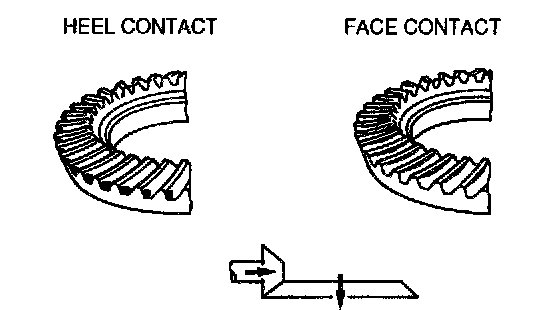 2) Inspect the heel and face contact by replacing the spacer with a thicker one to bring the drive pinion in.