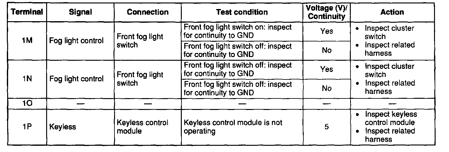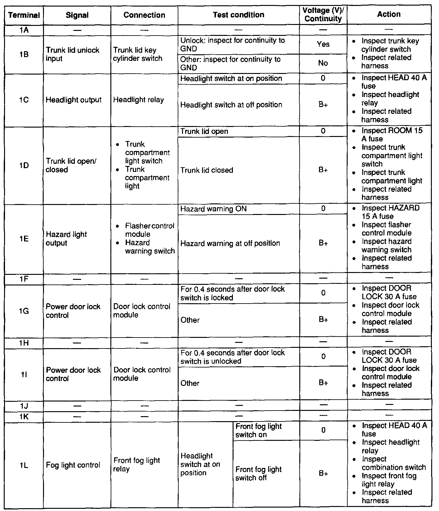 Connector B, C, and D (Terminals except 1B, 1M, 1N, 2D, 2T, 3A, 3F, 3H, 3J, and 3K)
