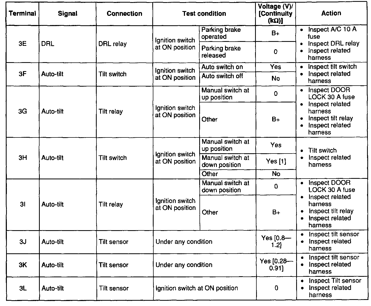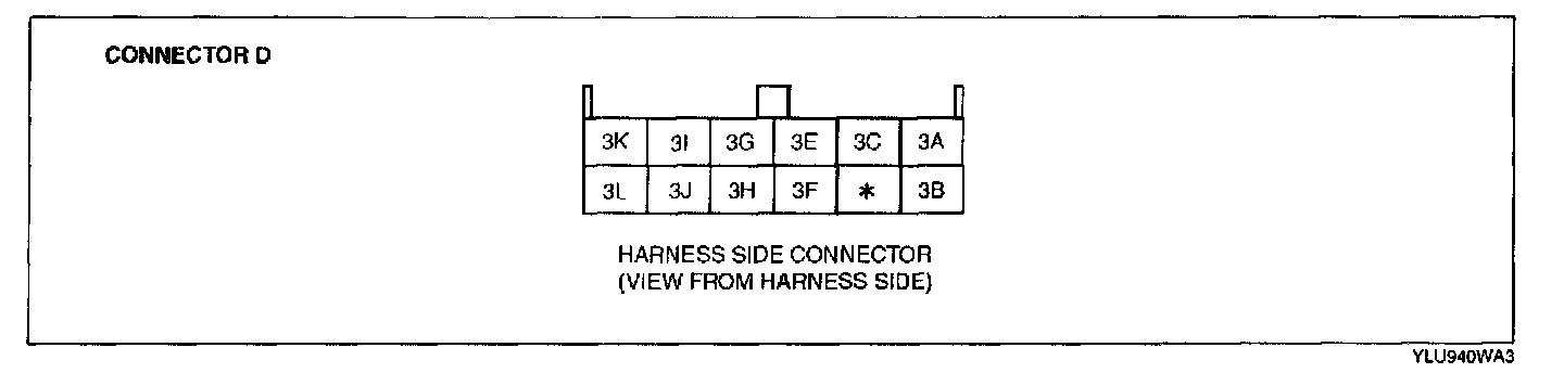 - When measuring the voltage at terminal 3B of connector D, use a voltmeter with sufficiently high input impedance (1 MOhms or more).