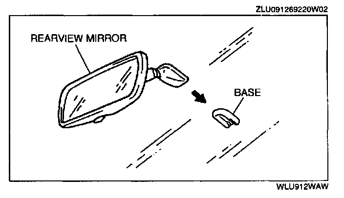 REARVIEW MIRROR REMOVAL1. Insert a flathead screwdriver between the mirror and the base.