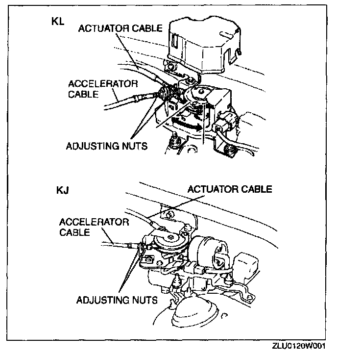 ACTUATOR CABLE ADJUSTMENT1. Turn the ignition switch to LOCK position.