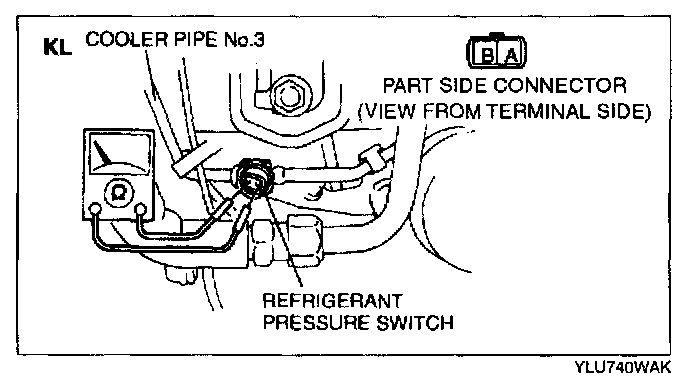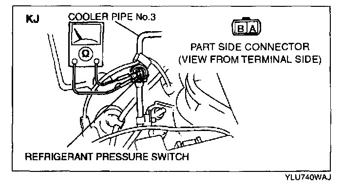 4. Inspect for continuity between the terminals of refrigerant pressure switch.