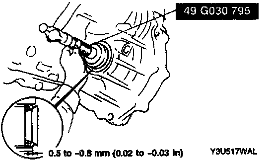 ^ The oil seal is easily damaged by the sharp edges of the drive shaft splices. Do not let the splines contact the oil seal.