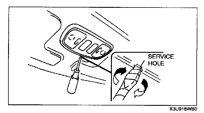 1. Insert a tape-wrapped, flathead screwdriver into the service hole.