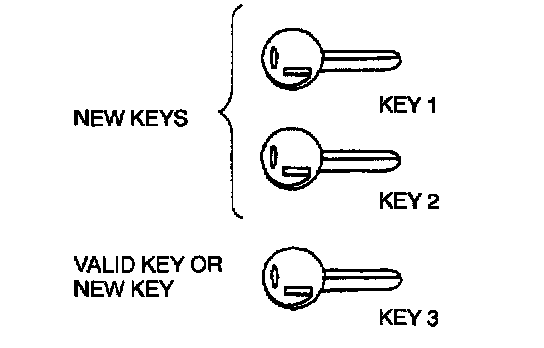 2. Turn key 1 to ON then back to LOCK six times. Key should not remain at ON or LOCK for more than one second. It is particularly important to ensure that the 6th turn is done with in 1 second.