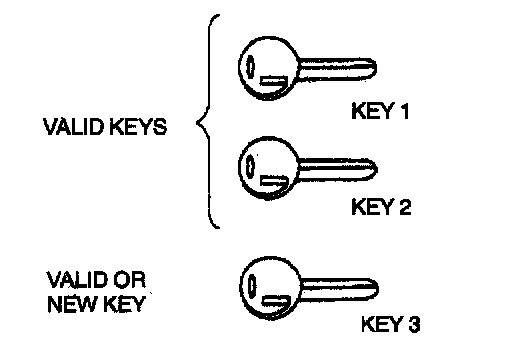 1. Using key 1, start engine. After security light illuminates for 1 - 2 seconds, turn key 1 to LOCK.
