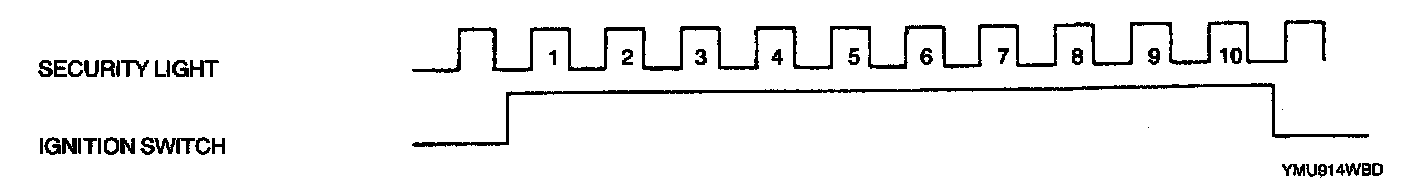 - The security light flashes ten or more times while the ignition switch is at ON position.
