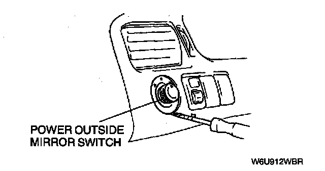 2. Insert a tape-wrapped, flathead screwdriver between the power outside mirror switch and the meter hood.