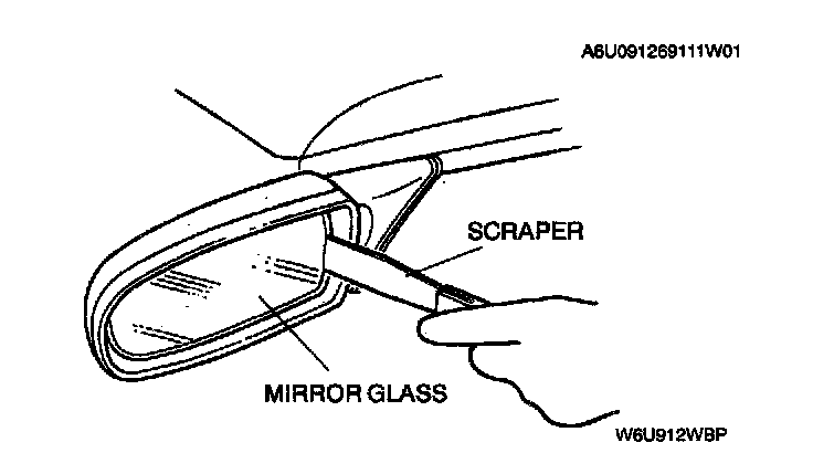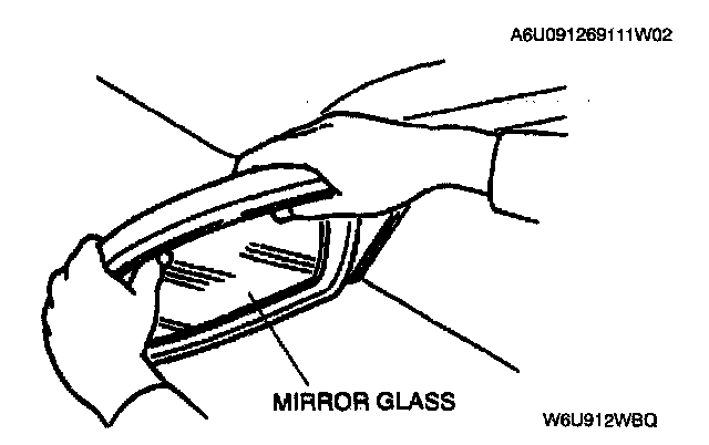 POWER OUTSIDE MIRROR GLASS REMOVAL1. Warm the frame and the mirror glass to approximately 70 °C {158 °F} for 3 minutes using a hot air blower.