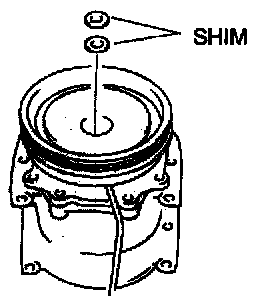 - If not within the specification, remove the pressure plate and adjust the clearance by changing the shim size or the number of shims. (See MAGNETIC CLUTCH DISASSEMBLY/ASSEMBLY)