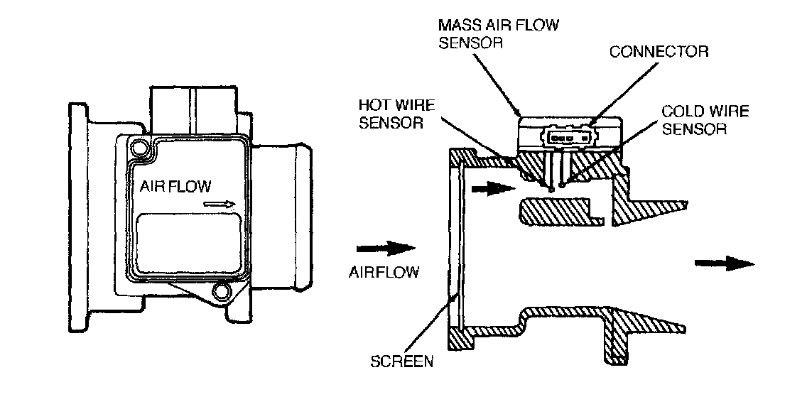Mass Air Flow Sensor Description- A hot wire type mass airflow sensor is used.