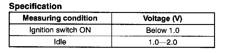 - Mass air flow sensor terminal C voltage: Below 1.0 V