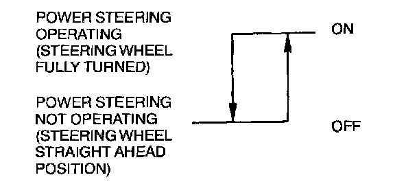 The power steering switch detects the power steering operating condition by the variation of the oil pressure in the power steering oil pump.
