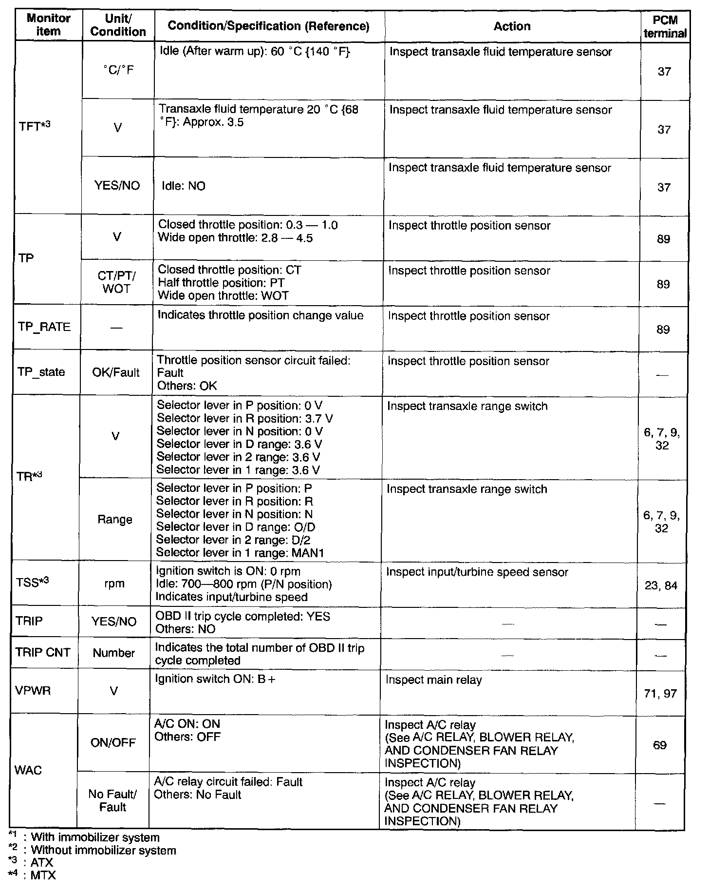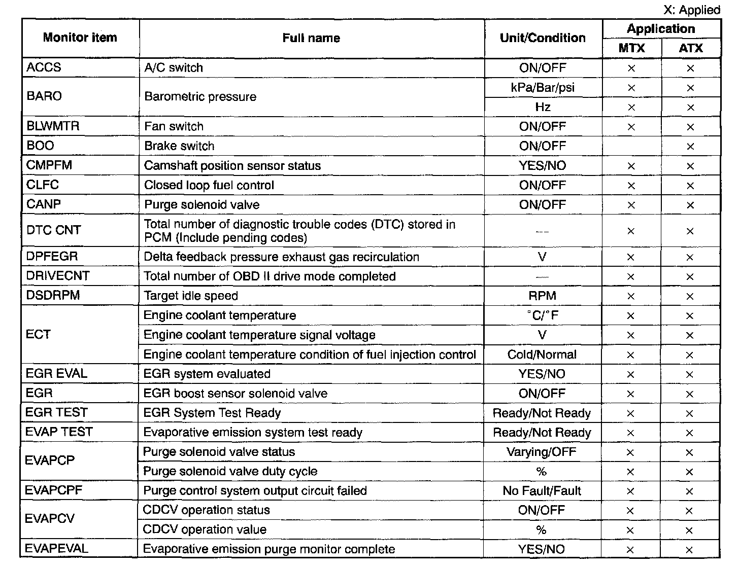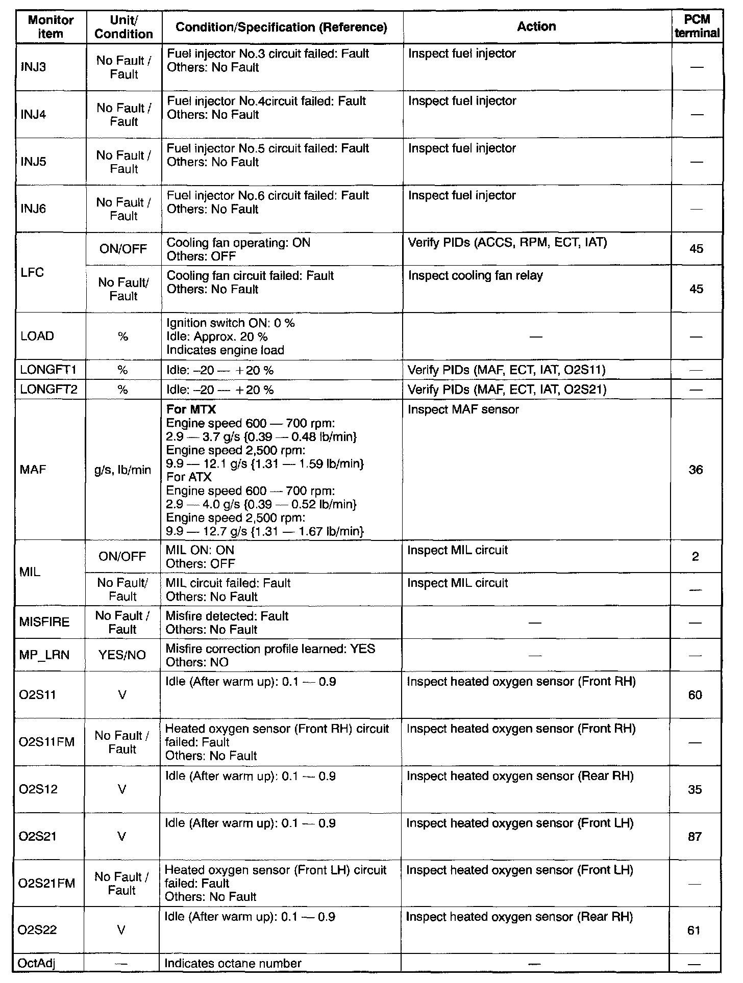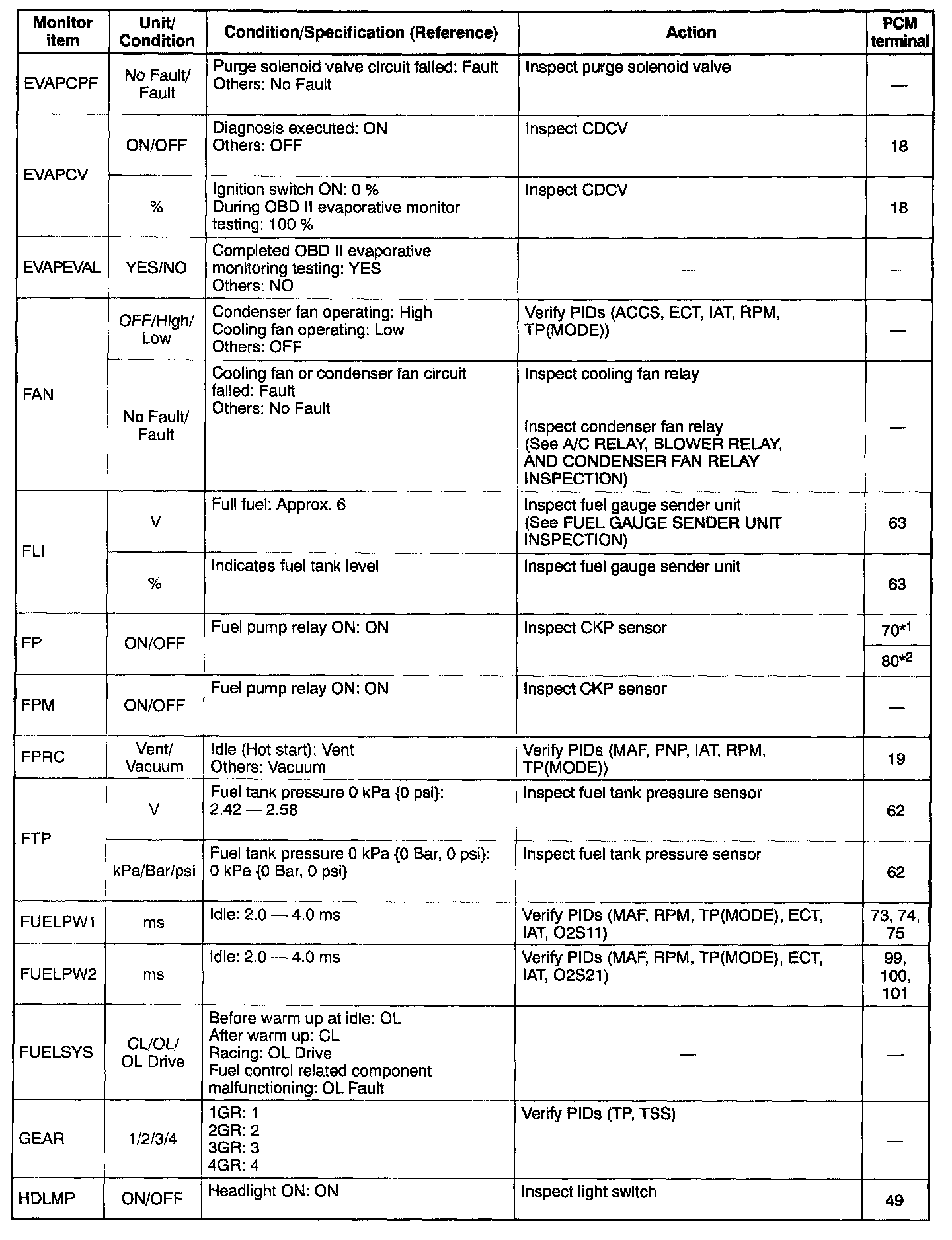 - PIDs for the following pats are not available on this model. Go to the appropriate part inspection.