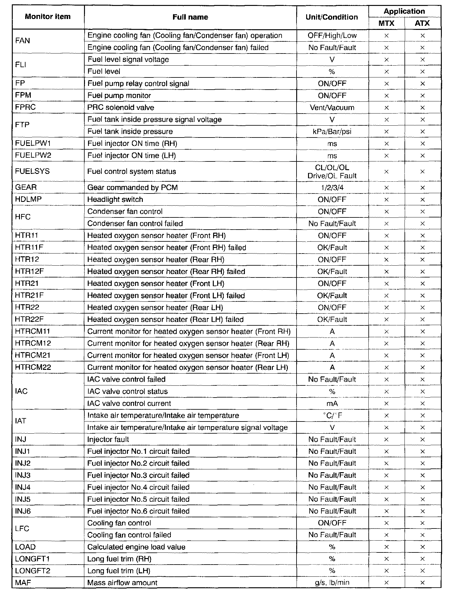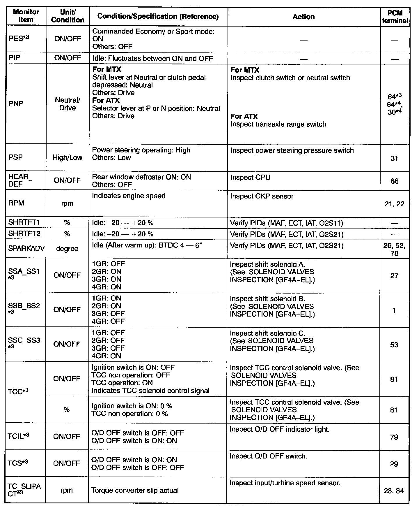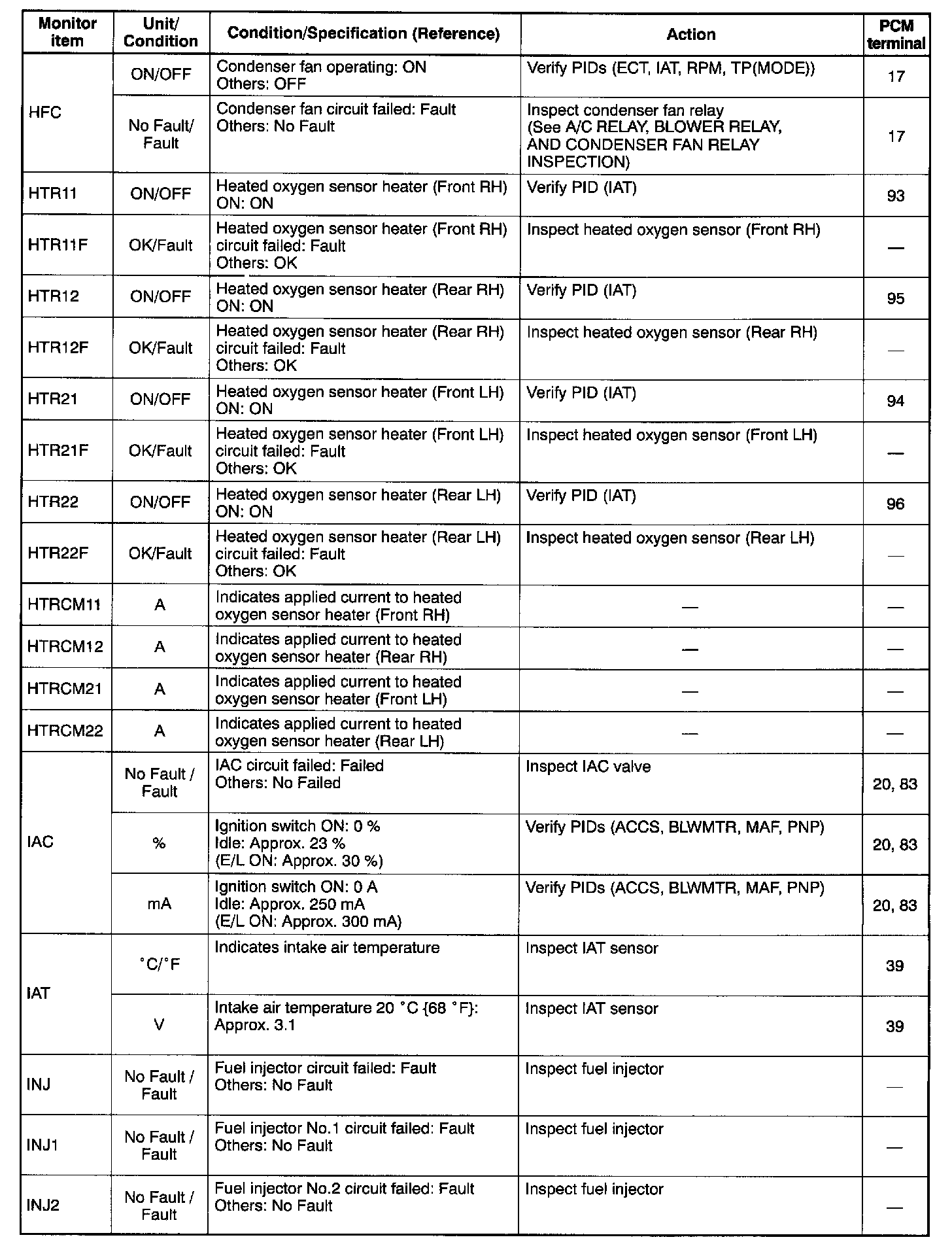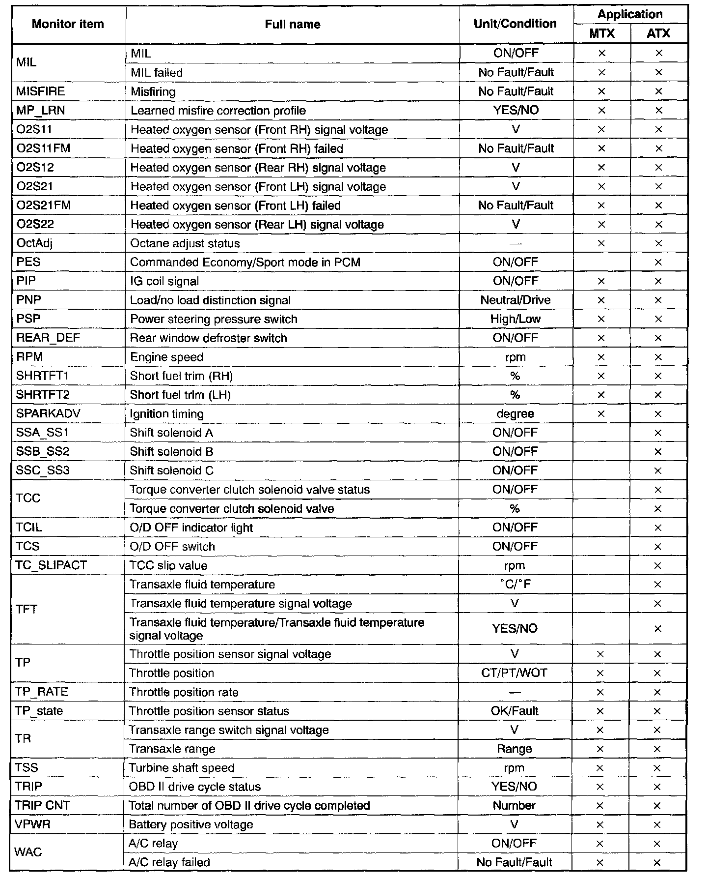 - PIDs for the following pats are not available on this model. Go to the appropriate part inspection.