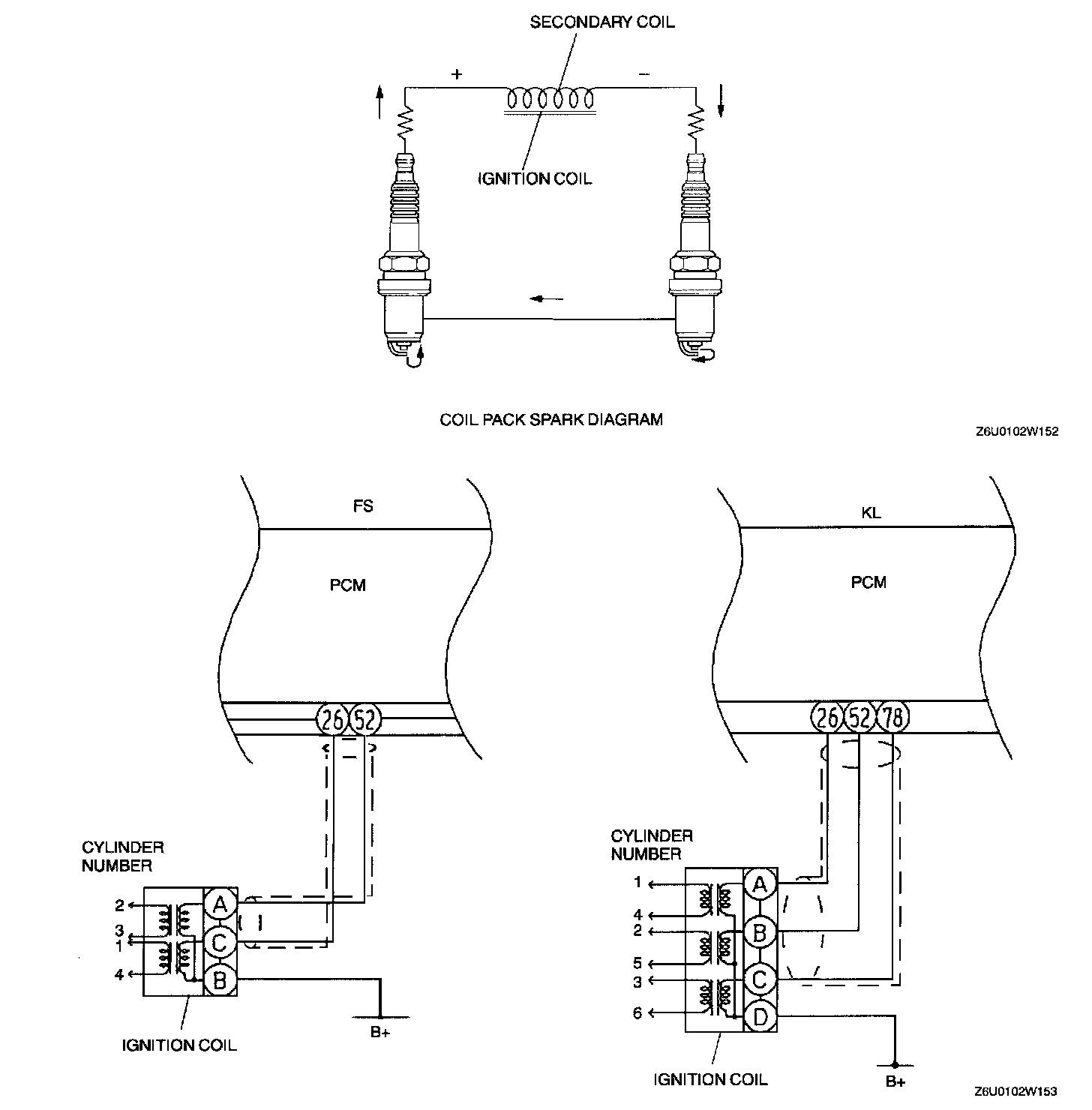- Each coil ignites two spark plugs at the same time.