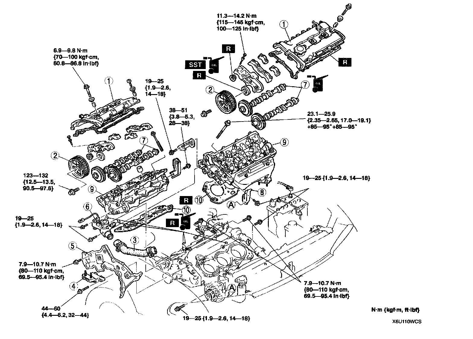 Camshaft cap bolts 11.3 - 14.2 Nm (100 - 125 inch lbs.)
