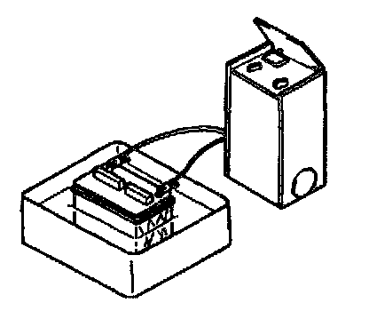 1. Place a battery in a pan of water to prevent it from overheating. The water level should come up about halfway on the battery. Keep water off the top of the battery.