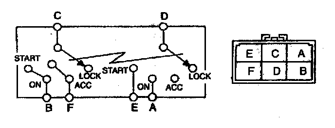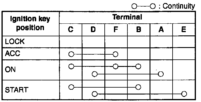 4. Check for continuity between the ignition switch terminals by using an ohmmeter.