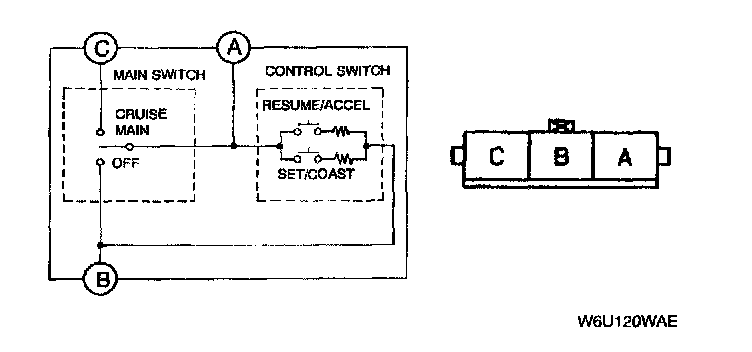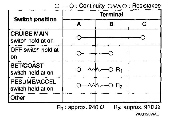 4. Measure the resistance and check for continuity between the cruise control switch terminals by using an ohmmeter.