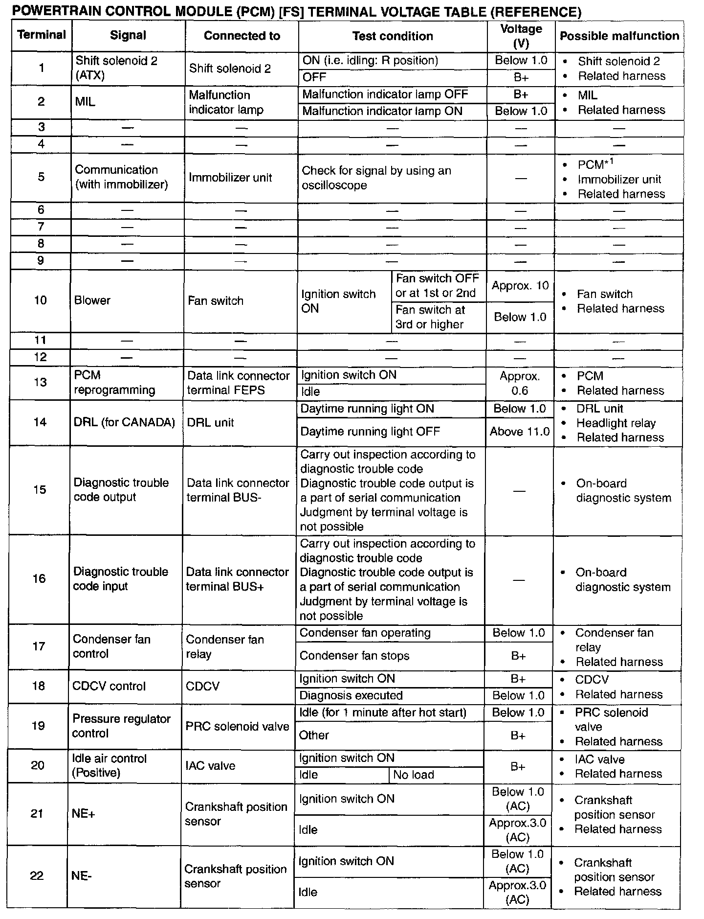 Terminals 1 - 22: