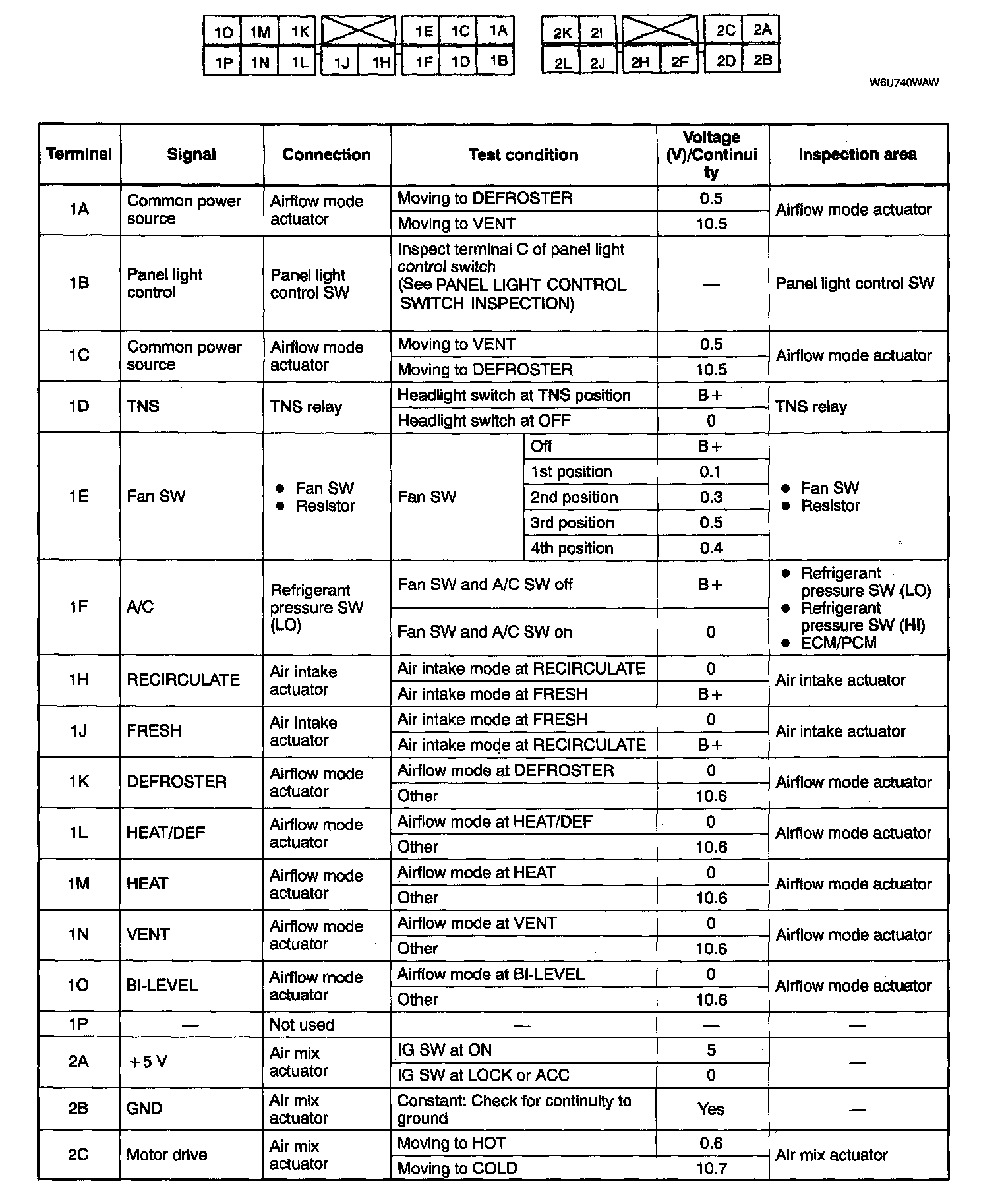 Terminal Voltage List (Reference) / Terminals (1A - 2C):