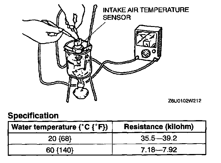 - If not as specified replace the intake air temperature sensor.