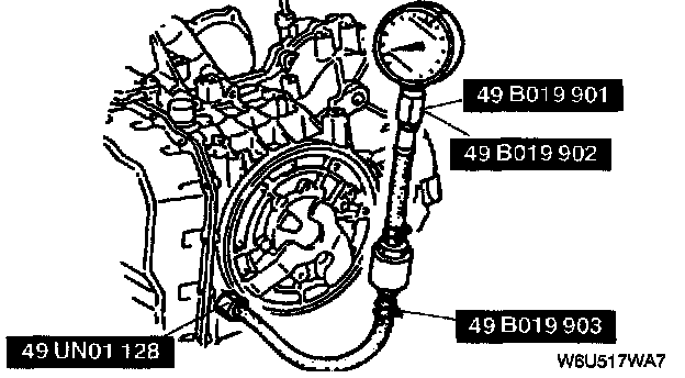 4. Remove the line pressure inspection port plug then connect the SSTs.
