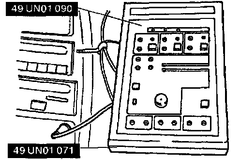 2. Set the two-way switch in the down position. Install the SSTs (TR/MLP overlay, MLPS harness adapter) onto the tester. Connect the interface cable (cable I.D. "D") to the transaxle tester and then to the TR switch connector.