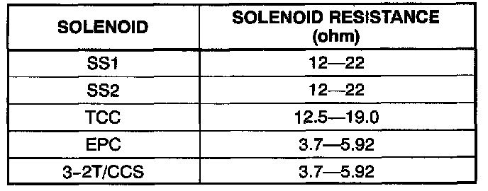 3. Connect the negative lead of the ohmmeter to the appropriate solenoid (EPC, SST, SS2, TCC, 3-2T/CCS) lack.