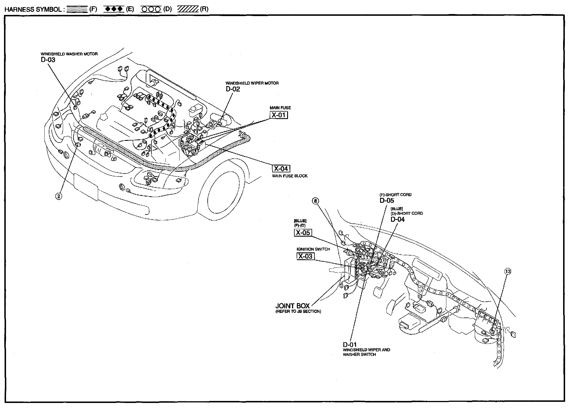 D - Windshield Wiper And Washer Harness/Connector Symbols: