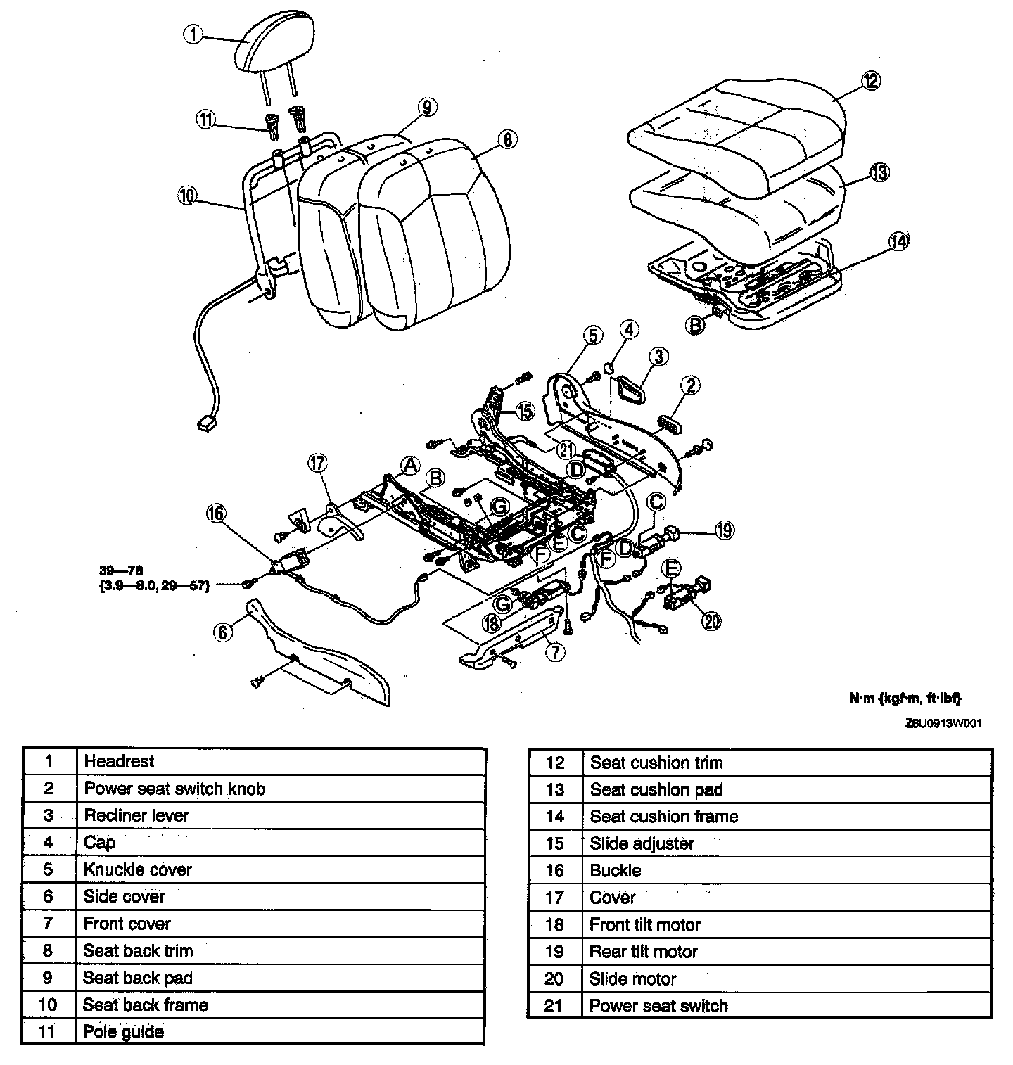 WARNING: Handling the front seat (side air bag) Improperly can accidentally deploy the side air bag, which may seriously injure you. Read AIR BAG SYSTEM SERVICE WARNINGS before handling the front seat. (See AIR BAG SYSTEM SERVICE WARNINGS.)