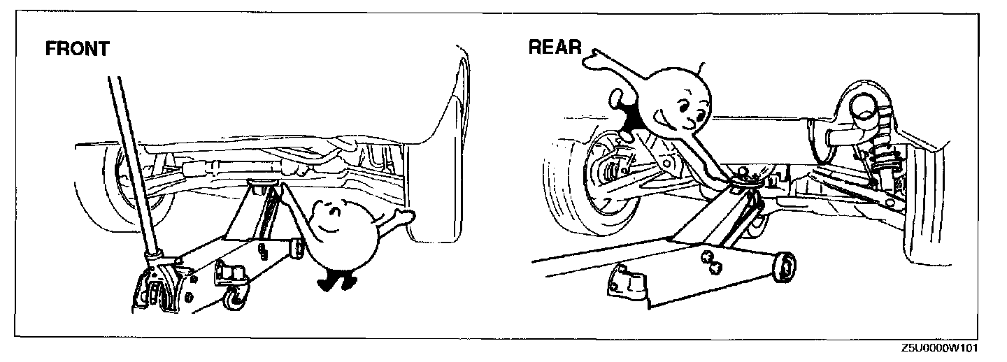 - Improperly jacking a vehicle is dangerous. The vehicle can slip off the jack and cause serious injury. Use only the correct front and rear lacking positions and block the wheels.