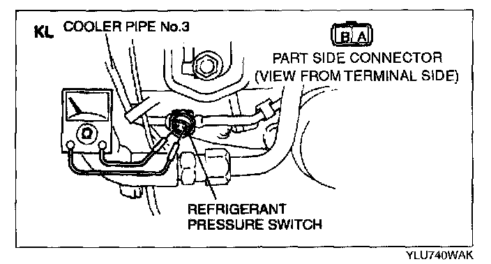 4. Inspect for continuity between the terminals of refrigerant pressure switch.
