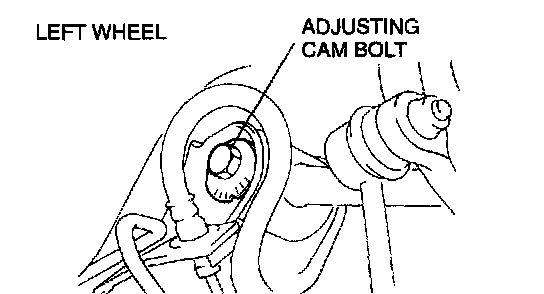 2. Turn the adjusting cam bolt to provide the correct camber angle as indicated.