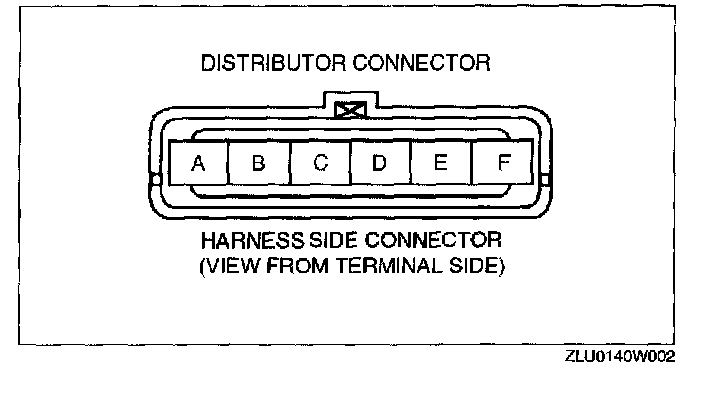 8. Inspect for continuity between the distributor connector (6-pin) terminal A and body ground using an ohmmeter.