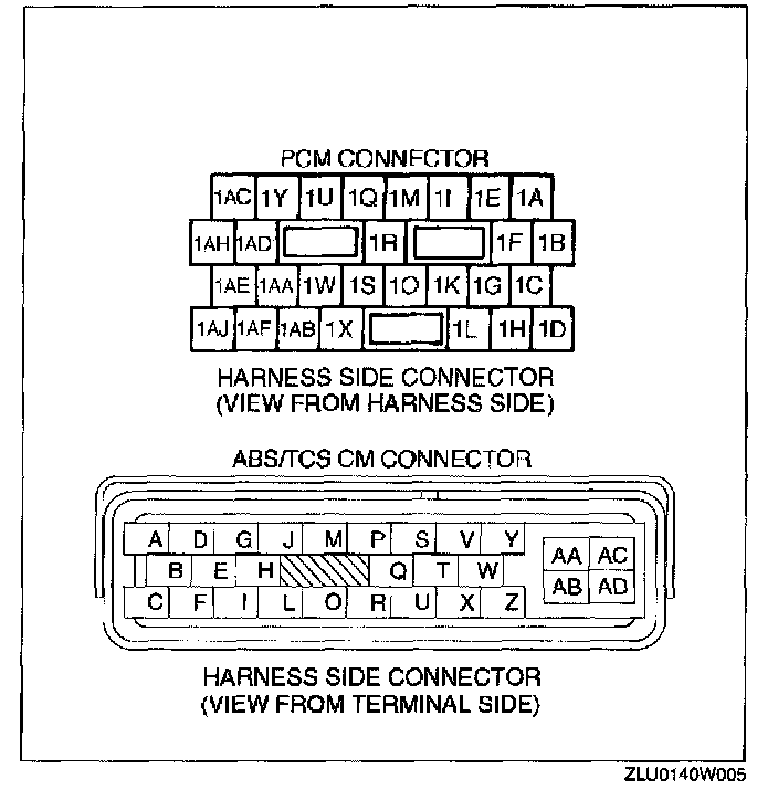 1. Disconnect the PCM connector and ABS/TCS CM connector.