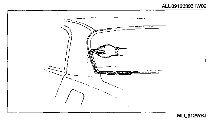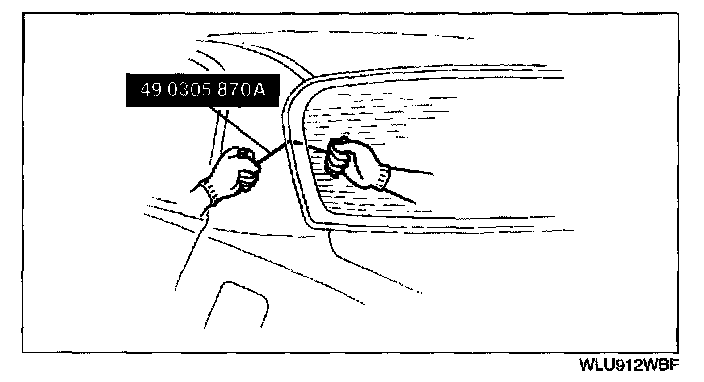 11. Working with another person, saw through the sealant around the edge of the glass. Use a long sawing action to spread the work over the whole length of wire to prevent it from breaking. Make sure the wire does not rub on the body.